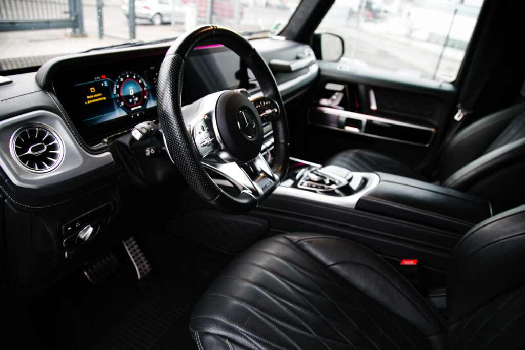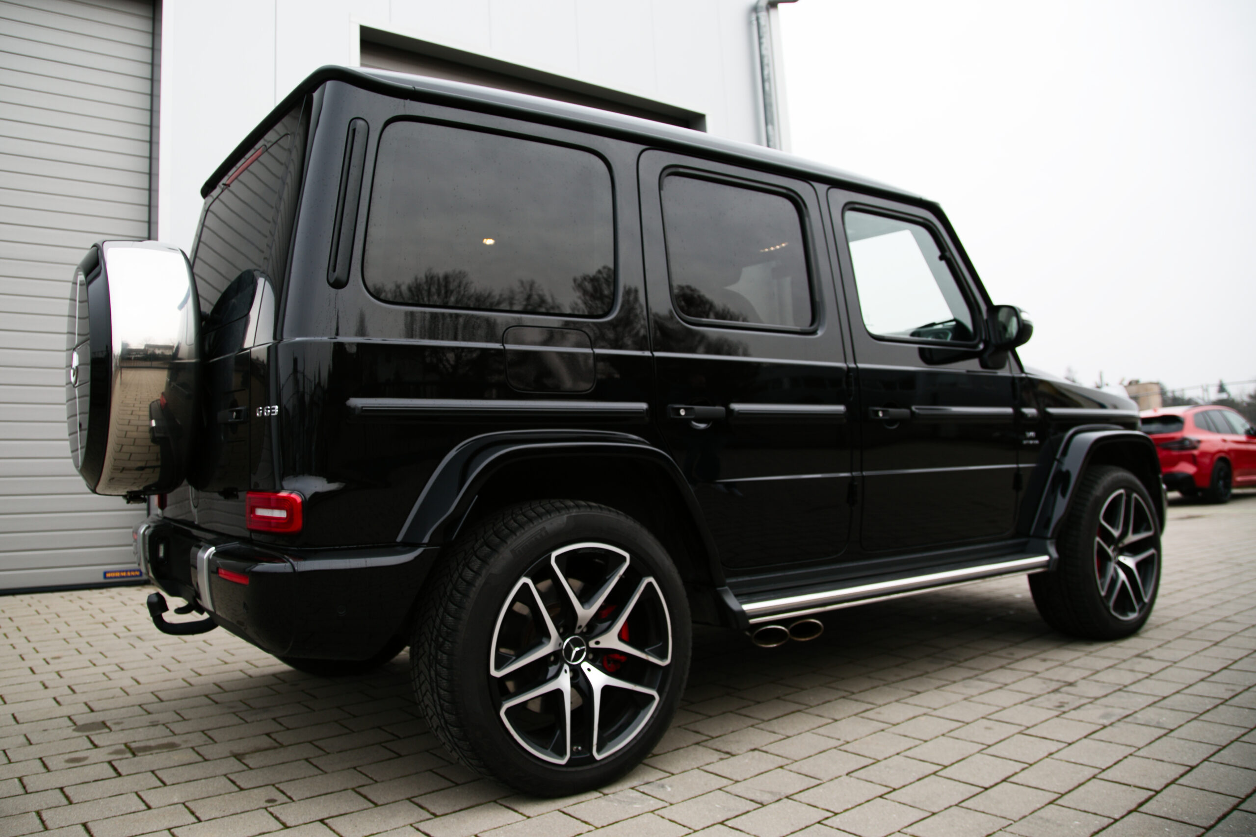 Der Mercedes-AMG G63 ist ein robuster Luxus-Performance-SUV mit kraftvollem 4,0 l V8-Biturbo-Motor, rund 585 PS und etwa 850 Nm Drehmoment, der in ca. 4,4 s von 0–100 km/h beschleunigt und typischen AMG-Komfort mit Offroad-Fähigkeiten kombiniert.